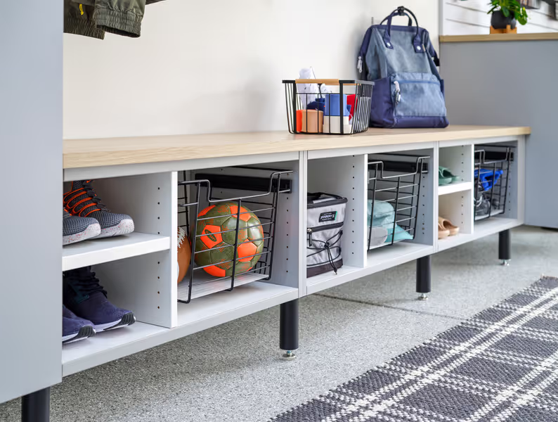 Bars and hooks move easily to fit the way your family actually lives—whether that’s a row of baseball gloves, extension cords, or pool nets.